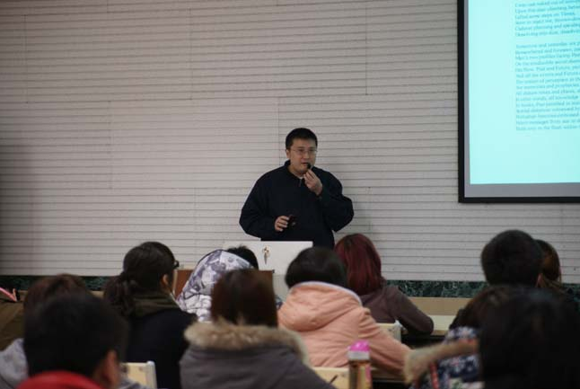 本次讲座,王博士主要从14世纪英国音乐的发展讲起,分别讲解了英国历史上著名的音乐家、作曲家、演奏家,并分别从Classic、Folk、Pop三种音乐形式入手,介绍其发展历史及现状。讲座中通过穿插高雅的歌剧院演奏、通俗的露天广场欢舞等音频视听,还原了英国不同领域雅俗共赏的音乐形式。跳动的心灵与律动的节奏将音乐完美的融入每一位爱乐人的心中。随后王博士主要结合他多年来的音乐实践与大家一起分享他的创作心得。王博士精彩的讲解让我们更切实地体会到音乐的魅力,引得台下学生禁不住产生跃跃欲试的创作冲动。