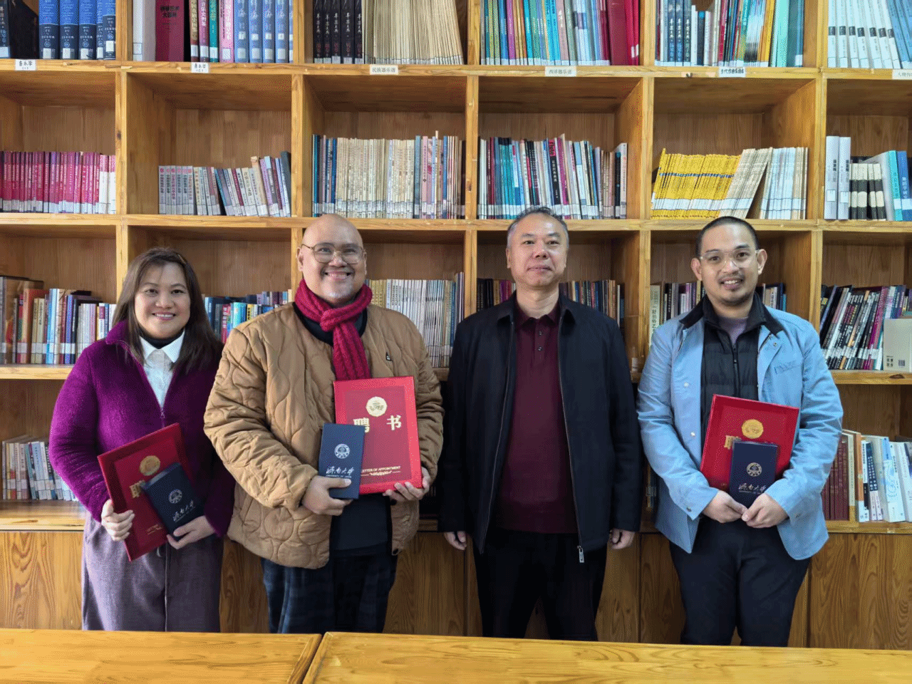 举行了客座教授聘任仪式,王建成副院长代表学院为Earl Clarence L. Jimenez教授、Lilymae F. Montano教授和Amiel Kim Quan Capitan教授颁发了聘书。王院长表示,三位教授的到访为太阳城网络娱乐赌博平台官网
