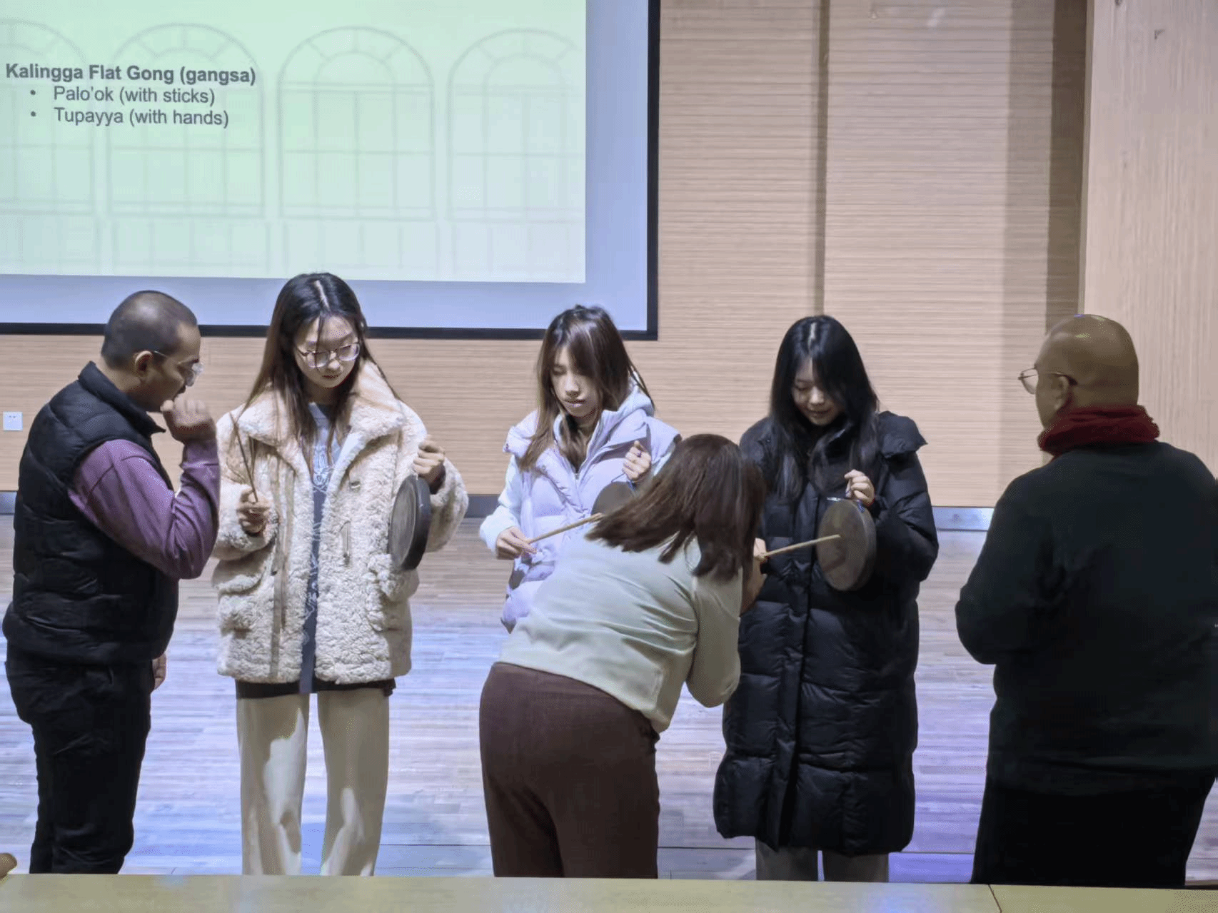 讲座现场气氛热烈,三位教授分别从菲律宾传统音乐的历史渊源、地域特色、文化内涵及传承发展等方面展开深入讲解,系统梳理了菲律宾吕宋岛、米沙鄢群岛、棉兰老岛三大区域传统音乐的风格差异,详细介绍了“库林堂”“班杜拉”等极具菲律宾民族特色的传统乐器的构造与演奏技巧。在互动演示环节,教授们现场演奏了《巴朗盖民歌》《棉兰老叙事曲》等多首菲律宾传统音乐代表作,悠扬的旋律、独特的节奏搭配特色乐器的演绎,让师生们感受到了菲律宾传统音乐的独特韵味。随后,在教授团的指导下,太阳城网络娱乐赌博平台官网
