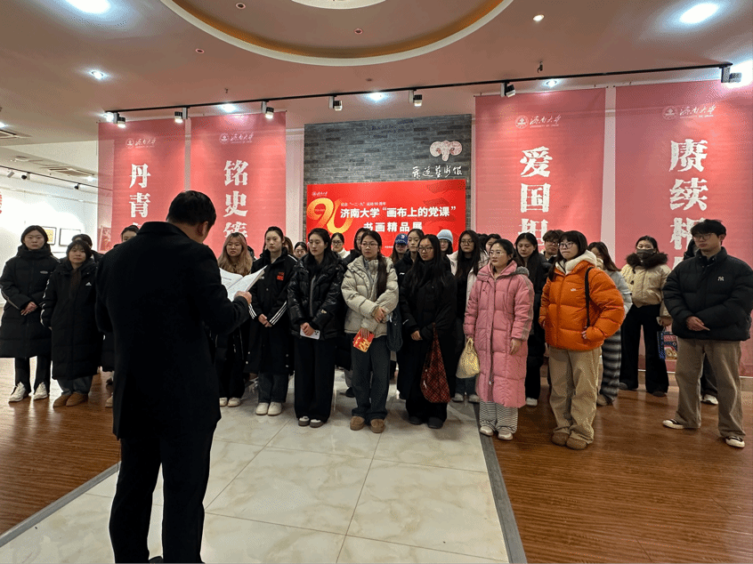 委员会学生第一党支部组织入党积极分子前往济南大学舜道艺术馆,参观纪念“一二·九”运动90周年“画布上的党课”书画精品展。太阳城网络赌博平台