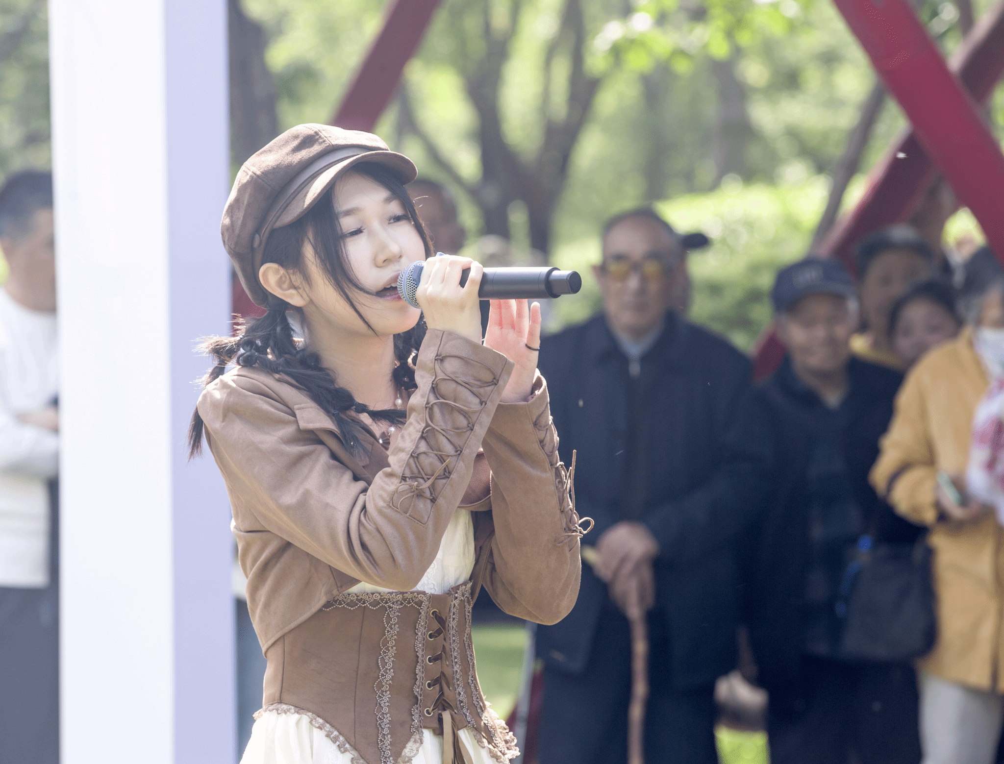 本次活动的高光时刻,当属唐磊副教授登场。二十年前,《丁香花》火遍全国,成为一代人青春符号;二十年后,唐磊在泉城公园丁香园再度唱响经典。旋律响起,全场观众自发合唱,歌声与花香交融,成为春日泉城动人风景。从民谣歌者到高校美育工作者,唐磊表示,带领学生在家门口为市民歌唱,是课堂教学与社会服务的完美结合,既检验专业教学成果,也让青年学子在服务中感悟艺术价值,意义非凡。